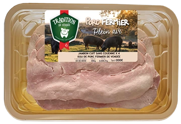 La qualité de nos produits repose avant tout sur une filière engagée. Les porcs sont élevés en plein air, en Vendée, dans le respect du bien-être animal, avec une alimentation saine et locale, enrichie en graines de lin pour un apport naturel en oméga 3.